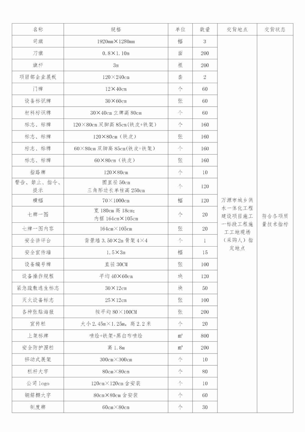萬源市城鄉供水一體化工程建設項目施工一標段工程安全標準化物資采購清單: