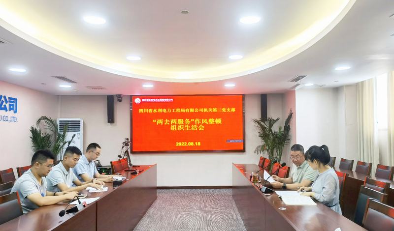 2022年8月18日,機關第三黨支部組織支部黨員及支部涵蓋部門(市場開發(fā)部、技術中心、川江檢測技術有限公司)全體職工在公司總部會議室和資陽辦公區(qū)301會議室以視頻形式召開“兩去兩服務”作風整頓專題組織生活會。機關第三黨支部書記丁毅主持會議。