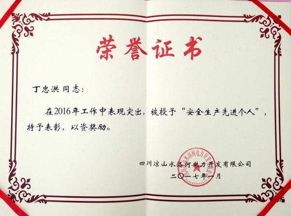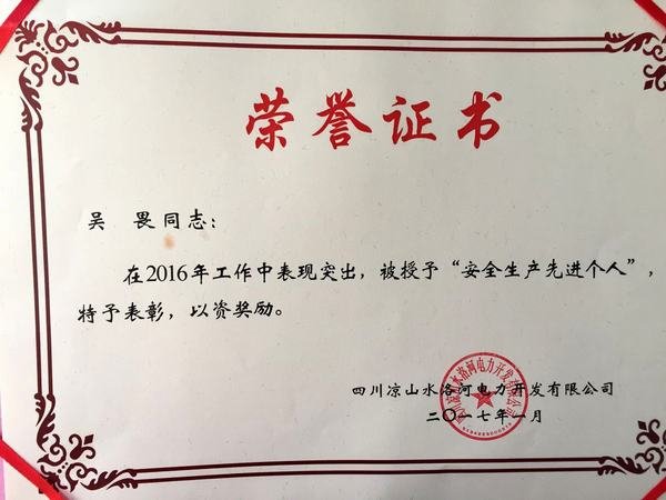 獎狀和證書是對鑫宏公司水洛河項目2016年安全生產工作的肯定和褒獎,同時也是鞭策,在2017年的現場安全生產中我們將再接再厲、更加努力,對待安全工作我們將“敬畏當先,知行并重”!