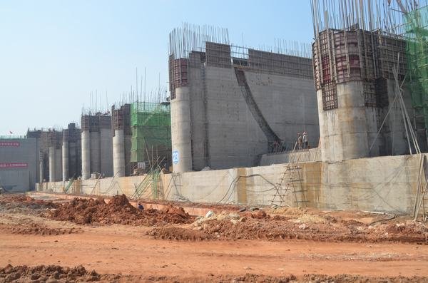 安裝間安裝間副廠房廠房機(jī)組段進(jìn)水流道(1#、2#機(jī))上游魚(yú)道反護(hù)坡尾水流道(7#、8#機(jī))下游魚(yú)道船閘下閘首二期全年圍堰上游導(dǎo)航墻消力池閘壩