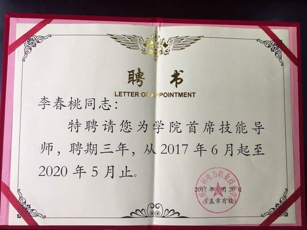授予技能導師聘書