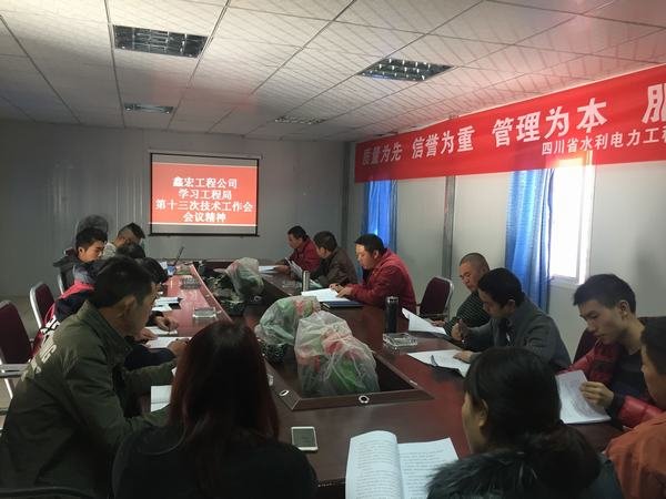 2017年11月24日中午,鑫宏公司在水洛河新藏電站項(xiàng)目部會(huì)議室組織召開(kāi)專(zhuān)題會(huì)議,傳達(dá)學(xué)習(xí)2017年工程局第十三次技術(shù)工作會(huì)議精神,會(huì)議由公司總工程師鄭中華主持。