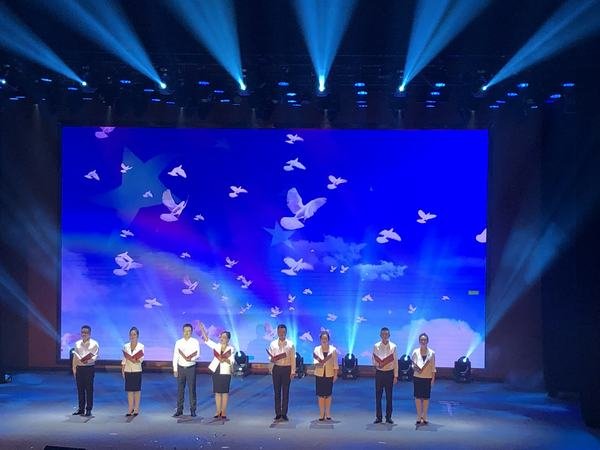 來自廳系統(tǒng)20個單位的近200名水利職工,通過一首首原創(chuàng)的詩歌,配合形式多樣的背景道具,歌頌偉大祖國70年來的砥礪奮進和輝煌成就,講述四川水利人追逐夢想情灑江河,抒寫“忠誠、干凈、擔(dān)當、科學(xué)、求實、創(chuàng)新”的新時代水利精神的壯志豪情。廳機關(guān)各處室、廳直屬各單位、部分水利基層單位水利職工近千人觀看了詩歌朗誦比賽。