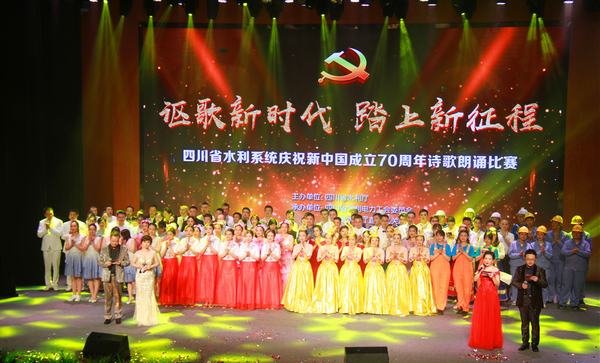 2019年9月25日下午,由四川省水利廳主辦、四川省水利電力工會承辦的省水利系統(tǒng)慶祝新中國成立70周年“謳歌新時代、踏上新征程”詩歌朗誦比賽在崇州四川省水利職業(yè)技術(shù)學(xué)院大禮堂隆重舉行。省水利廳黨組書記、廳長胡云出席并講話,廳黨組成員、省紀委駐水利廳紀檢監(jiān)察組組長李啟兵,廳黨組成員、副廳長李勇藺,廳黨組成員、副廳長譚小平,廳黨組成員、廳機關(guān)黨委書記趙斌出席并分別為獲獎單位頒獎。工程局黨委委員、總工程師汪輝德全程觀看演出并擔(dān)任評委。
