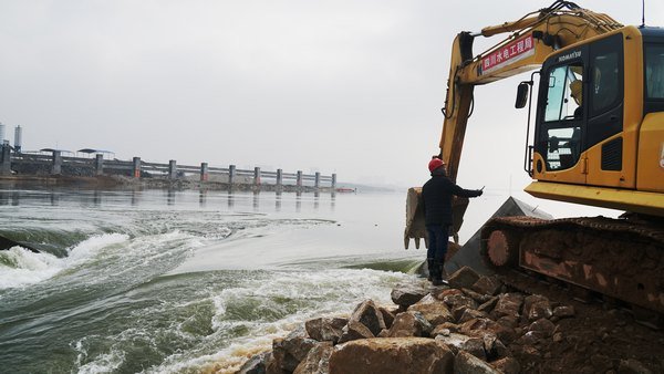 “三期”大江導截流工程建設,時間緊、任務重、難度大,是一場大仗、硬仗、苦仗。項目部認真貫徹工程局工作部署和堅定落實鄔清富局長視察龍頭山航電樞紐工程的指示,項目部堅持把“三期”導截流工作擺在壓倒性位置,不容絲毫懈怠。圍繞解決截流落差大、流速急,項目部主動準備四面體砼等特殊截流材料,不斷克服圍堰戧堤進占塊石料缺乏和持續降雨惡劣施工氣候條件等突出的問題和困難。項目部各部門進一部深化認識,統一思想,加強統籌協調,形成合力,扎實細致工作;強化目標責任體系、質量標準體系、安全風險體系等日常管理和監督,抓落實、重執行。廣大干部職工發揚艱苦奮斗、勇于勝利的鐵軍精神,自覺肩負起工程局賦予的重任,不畏風雨、不懼嚴寒、夜以繼日,奮力推進導截流工程建設。