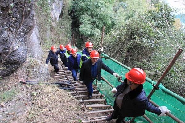 代勇一行在第一分公司經(jīng)理范雪山、第四分公司經(jīng)理羅茂林等陪同下,攀爬崎嶇陡峭的鋼管架設人行棧道,分別到達距離地面高73m的2#勘探平硐、距離河床高30m的1#勘探平硐以及5#勘探平硐,詳細了解工程現(xiàn)場的施工進展情況和施工難度。代勇首先代表公司黨委對春節(jié)期間仍堅守施工的第一、四分公司全體干部職工表示感謝和慰問,同時指出此行也是春節(jié)前對工地現(xiàn)場進行的安全大檢查,并對存在的安全隱患提出了整改要求。