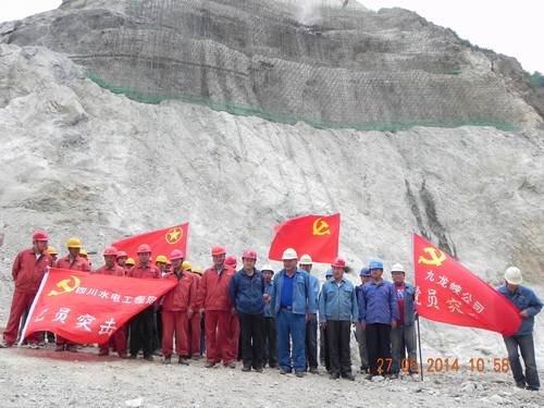 “七一” 黨旗迎風飄揚在九龍峽電站工地