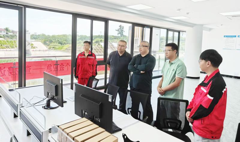 為全面貫徹落實安全生產工作,做好汛期應急備汛,加快建設公司承攬的向家壩灌區北總干渠一期一步工程供水運維項目工作平穩推進,7月2日,公司董事、總經理羅雪與向家壩公司黨委副書記、副董事長、總經理羅衡就向家壩灌區工程建設相關問題進行交流,深入機電安裝分公司承擔的向家壩一期一步供水運維項目自貢分中心開展汛期安全檢查暨供水運維工作現場調研。