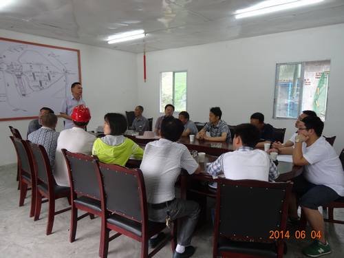 2014年6月4日上午10時30分,筠連縣副縣長張三印、筠連縣人大副主任晉方全、筠連縣煙草公司副局長葉勇、筠連縣煙草公司煙稽辦主任趙曉衛(wèi)、筠連縣煙辦主任詹本華、筠連縣后溝水庫指揮部辦公室主任陳大均、業(yè)主方代表張長興、監(jiān)理方代表羅立、筠連縣團林鄉(xiāng)政府黨委書記艾勇、筠連縣團林鄉(xiāng)人大主席郭仕勇、筠連縣團林鄉(xiāng)鄉(xiāng)長王永才等一行蒞臨后溝水庫項目部考察工程進展情況,整個考察過程由項目部副經(jīng)理周加利陪同。