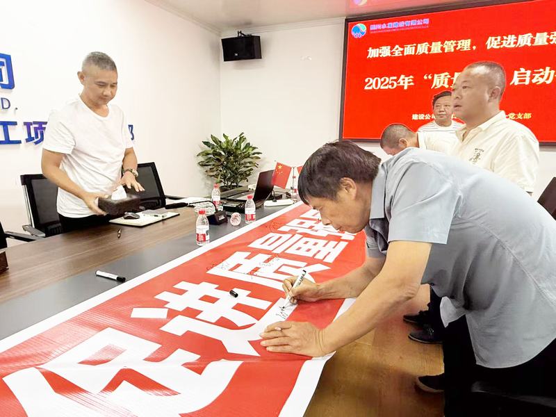 亭子口灌區一期工程EPC第I標于9月4日召開專題啟動會,詳細介紹了公司“質量月”活動的主題、目標以及具體要求,并細化活動方案,計劃開展質量管理知識競賽、質量主題演講、“我當一天質檢員”體驗等活動,持續強化工序驗收管控,夯實質量基礎,嚴格全過程監管,層層壓實質量管理責任,促進項目質量工作全面提升。活動最后,全體人員進行了莊嚴地宣誓,并開展了橫幅簽字儀式。