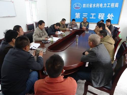 2015年4月6日下午,局第三工程處在筠連后溝水庫項目部召開職工大會,傳達學習2015年局工作會精神。會議由三處黨支部副書記周加利主持。
