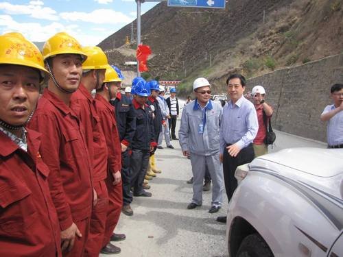 2015年5月27日下午3時(shí),中國(guó)大唐集團(tuán)公司總經(jīng)理王野平一行蒞臨鄉(xiāng)城洞松水電站視察。我局常務(wù)副局長(zhǎng)董蜀良、洞松水電站首部樞紐現(xiàn)場(chǎng)負(fù)責(zé)人曹軍陪同檢查。