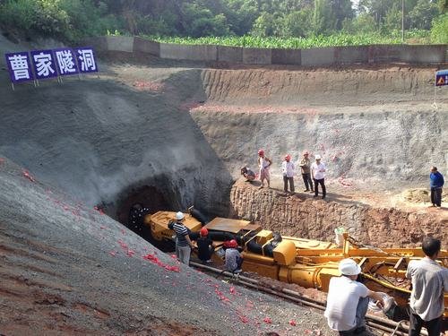 2015年6月9日,太陽剛剛升起,毗河供水一期工程曹家隧洞出口的工地上已是一片繁忙的景象。上午9時,該工程項目副經(jīng)理孫紹陽一聲令下,鞭炮與機械齊鳴,工程局第四工程處第二臺懸臂式掘進機正式開鉆。