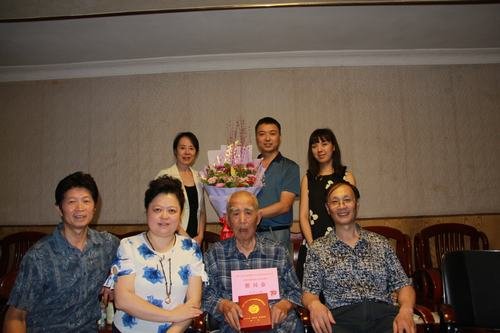 慰問組一行在與吳老的親切交談中,關(guān)切詢問了吳老的生活起居、身體健康等情況,共同回憶了革命戰(zhàn)爭時期的崢嶸歲月,共話革命精神的傳承,共同謳歌新中國建設(shè)的偉大成就,并為吳老送上鮮花、光榮榜、抗戰(zhàn)勝利70周年紀念章和5000元慰問金。