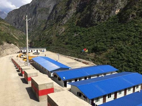水洛河潺潺的流水,斜陽(yáng)映襯著青翠的山巒。在這美麗的山水圖畫(huà)間,天藍(lán)色的板房錯(cuò)落有致,嫩芽初上的花臺(tái)上隨風(fēng)飄揚(yáng)的徽旗略顯莊嚴(yán),白灰色的籃球場(chǎng)上時(shí)而傳來(lái)陣陣喝彩……博瓦水電站首部樞紐工程項(xiàng)目經(jīng)理部臨建設(shè)施已建成投用。