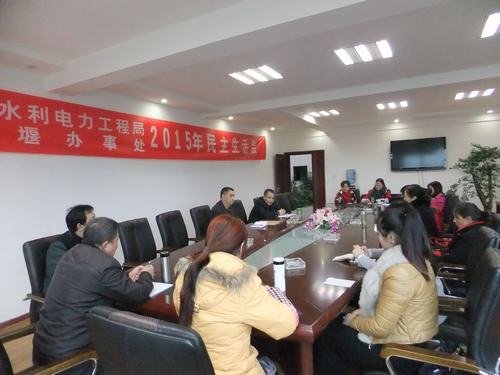 2015年12月4日下午,局都江堰市辦事處在水利大廈三樓會議室召開了2015年處級領導班子民主生活會,會議由黨支部書記、工會主席孫代華主持,班子成員、各部門負責人和職工代表參加了會議。