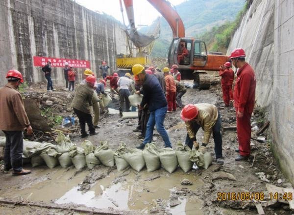 14時(shí)12分,常務(wù)副經(jīng)理李陵立即向項(xiàng)目部各部門(mén)指示:啟動(dòng)《2016年防洪搶險(xiǎn)應(yīng)急預(yù)案》,對(duì)相關(guān)人員的具體工作做了進(jìn)一步明確和安全撤離的要求,20分鐘后,按應(yīng)急演練分工,撤離工作有條不紊的開(kāi)展,并迅速撤離了正在作業(yè)的人員和設(shè)備,40分鐘后完成了對(duì)廠房防洪墻的臨時(shí)加高,安全人員對(duì)施工現(xiàn)場(chǎng)進(jìn)行警戒、觀察水位上漲情況,李陵向彝良縣政府防汛抗旱指揮部、彝良縣瑞源水電開(kāi)發(fā)有限公司通報(bào)防洪度汛應(yīng)急救援搶險(xiǎn)情況。