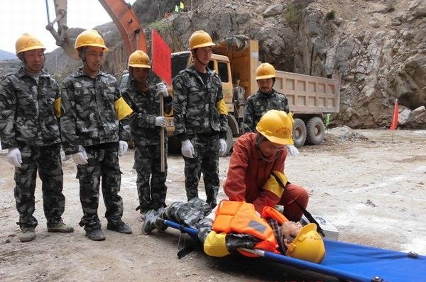 局三機(jī)處博瓦電站項(xiàng)目部為了圓滿完成任務(wù),在應(yīng)急演練前對各環(huán)節(jié)作了周密部署,先后完成了防洪度汛應(yīng)急預(yù)案、演練方案的編制、度汛設(shè)備物資準(zhǔn)備、人員動員、預(yù)演等工作。實(shí)施過程中,主要進(jìn)行了洪水到來前的預(yù)警、人員逃生、現(xiàn)場應(yīng)急搶險、設(shè)備物資撤離、人員受傷救護(hù)等科目的演練。