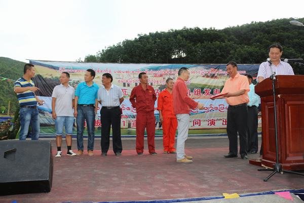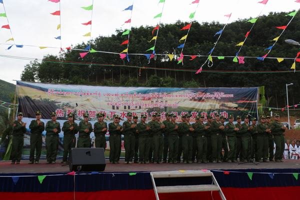 為慶祝首臺機組發(fā)電,南板地區(qū)管委會和911旅特別組織部隊、地方宣傳隊到電站施工現(xiàn)場進行慰問演出,勐瓦電站參建各方全體人員參加了這次慶祝活動。